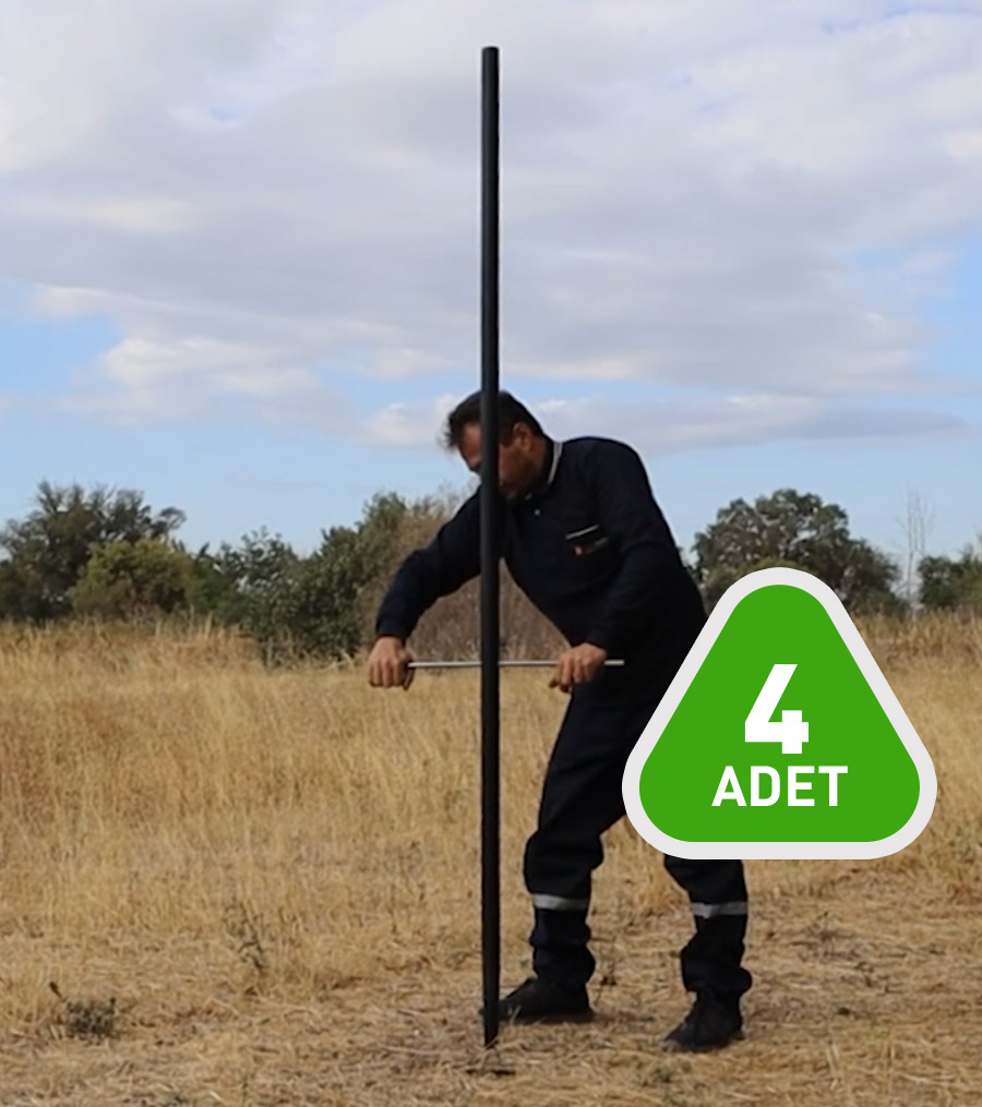 Hayır. Spiral uç sistemi sayesinde yalnızca el gücüyle toprağa vidalanabilir. Sert zeminlerde boru desteği kullanılabilir.