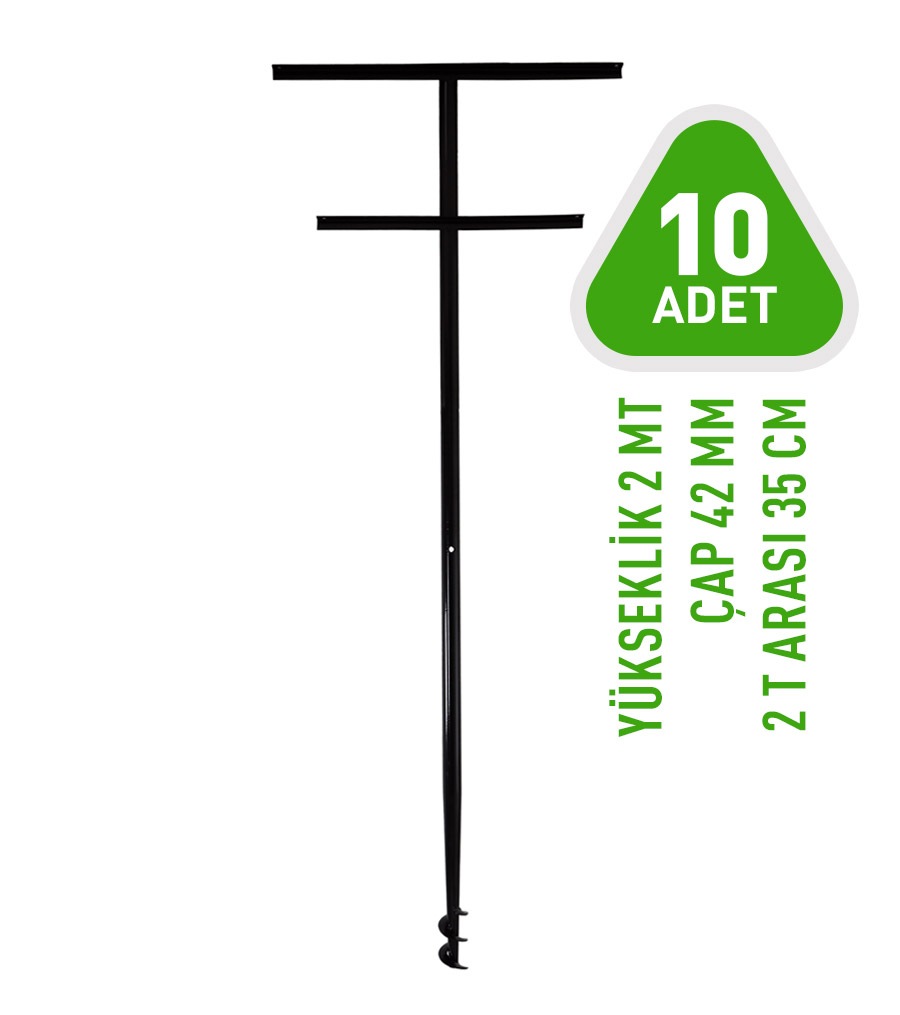 Profesyonel bağ ve meyve bahçesi sistemleri için tasarlanan 42 mm çapında ve 2 m yüksekliğinde bu telli terbiye baş direği, geniş çaplı gövdesi ve çift T bağlantı aralığı sayesinde güçlü, dengeli ve uzun ömürlü bir taşıyıcı yapı sunar. 2 T arası 35 cm mesafe, tel düzenini mükemmel şekilde hizalarak bitkilerin dengeli gelişimini destekler. Kalın metal gövdesi ve spiral uç yapısı, rüzgâr ve dış etkenlere karşı üstün dayanıklılık sağlar.